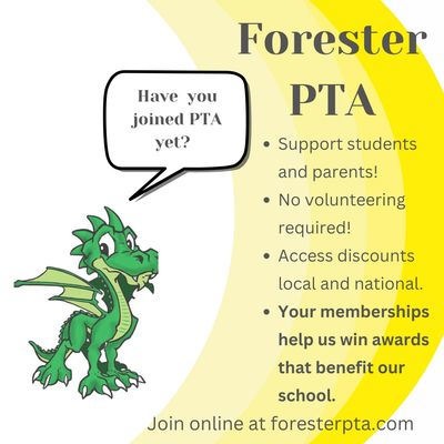 Our fantastic board, administration, teachers, families, and community are all part of a large team to effectively represent, promote, and play a vital role in each child's education here at Forester. The events and programs we offer the Dragons of Forester are just a small example of how our PTA and team celebrate and support our students' success and education.