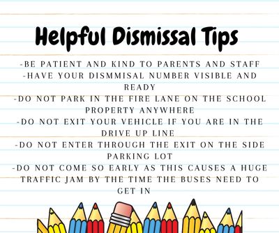 Following the rules for drop-off and dismissal is essential to keeping our students and staff safe. These procedures are designed to maintain a smooth and efficient flow of traffic while minimizing risks. When everyone follows the guidelines, we can ensure a safer environment and a faster, less stressful experience for all families. Your cooperation makes a big difference—thank you for helping us protect our school community!